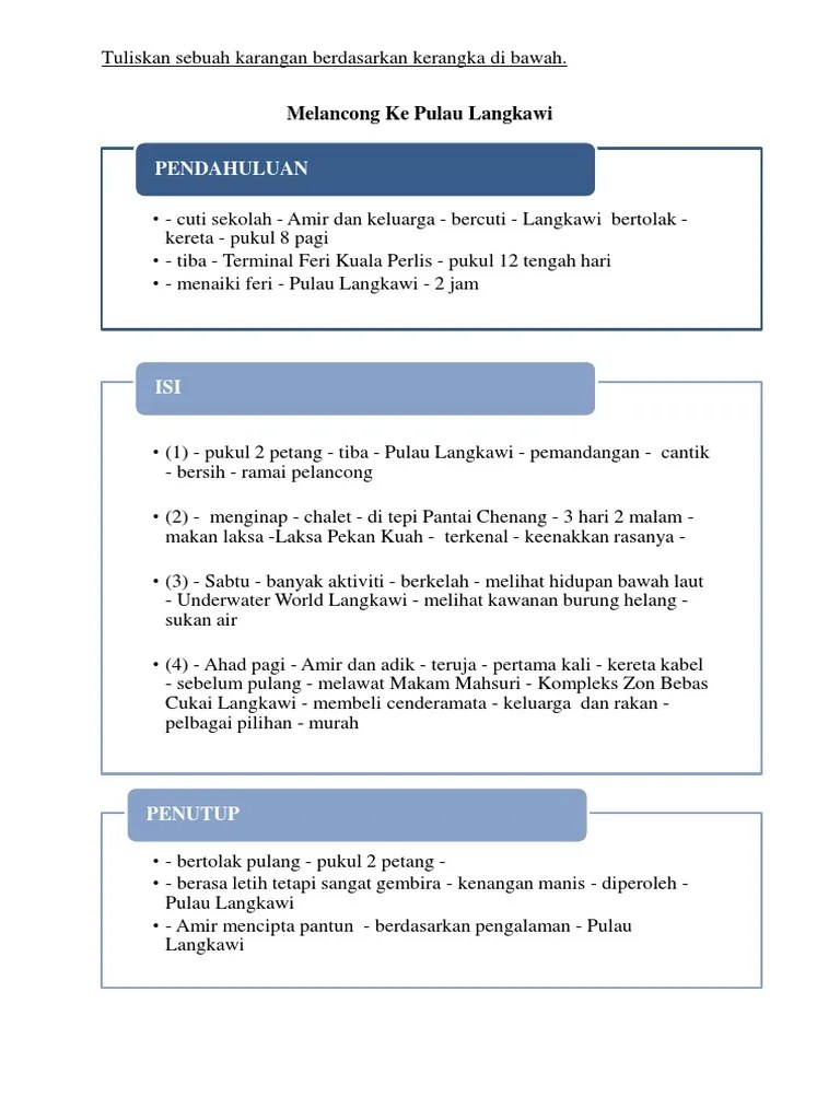 Contoh karangan laporan tahun 6 karangan . Aku bersama keluarga pulang ke kampung datuk di muarjohor pada cuti semester yang lalu dengan menaiki vankami sekeluarga membuat persediaan .
